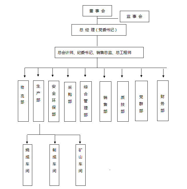 三門峽騰躍同力水泥有限公司位于河南省澠池縣境內(nèi),地處晉、陜、豫三省交匯處,緊靠連霍高速公路、310國道,交通便利。公司總面積274175.46m2,公司類型為一人有限責(zé)任公司。公司實行董事會領(lǐng)導(dǎo)下的總經(jīng)理負(fù)責(zé)制,下設(shè)綜合管理部、生產(chǎn)部、財務(wù)部、采購部、市場部、銷售部、物流部、質(zhì)量技術(shù)部、安全環(huán)保部、黨群部。生產(chǎn)部下設(shè)燒成車間、制成車間、礦山車間。