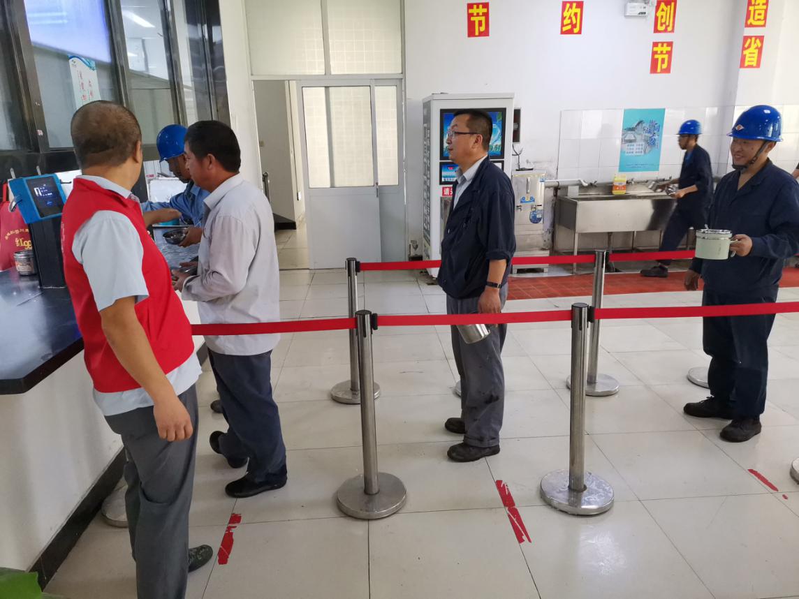 上午10:50 “文明餐桌志愿服務(wù)隊(duì)”成員已穿上紅馬甲,在職工餐廳集合,擺放好餐桌上的隔離擋板和椅子,規(guī)置好餐廳取餐窗口的警戒欄桿。11:00開飯時(shí)間到,陸續(xù)有員工到達(dá),11:30各車間員工、外協(xié)檢修人員同時(shí)到達(dá)職工餐廳形成就餐高峰。通過“紅馬甲“的指引勸導(dǎo),職工們根據(jù)飯量不同,按需打菜,垃圾桶里剩菜剩飯明顯減少,取餐窗口排隊(duì)秩序井然,單人單桌就餐或雙人隔板就餐文明規(guī)范。